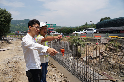 圖為工作人員到溫嶺西收費(fèi)所車道拓寬現(xiàn)場檢查 烈日炎炎,在黃土嶺隧道現(xiàn)場,工程養(yǎng)護(hù)部人員拿著卷尺仔細(xì)測量,做好數(shù)據(jù)記錄,并查看分析路段中一些破損的部位,一個來回下來汗已濕透衣背。隨后,一行人趕往臺州南收費(fèi)所鋼結(jié)構(gòu)施工現(xiàn)場,查看施工進(jìn)展情況,要求施工單位緊盯合同工期,加強(qiáng)施工管理,同時一再強(qiáng)調(diào)施工中要做好防暑降溫工作,避開高溫時間段施工,注重高溫作業(yè)安全。 近期,工程養(yǎng)護(hù)部現(xiàn)場管理人員時常頭頂烈日奔赴各施工現(xiàn)場監(jiān)工,查看路段護(hù)坡、路肩墻、防塵網(wǎng)施工情況,定時巡查溫嶺西車道拓寬工程進(jìn)展,督促各收費(fèi)所裝修工程早日完工,沿線查看黃土嶺山體排水改造工程施工成果等。在查看施工進(jìn)展的同時,他們還在現(xiàn)場宣傳高溫酷暑安全防范的重要性,嚴(yán)抓工程質(zhì)量與安全。 李夢君