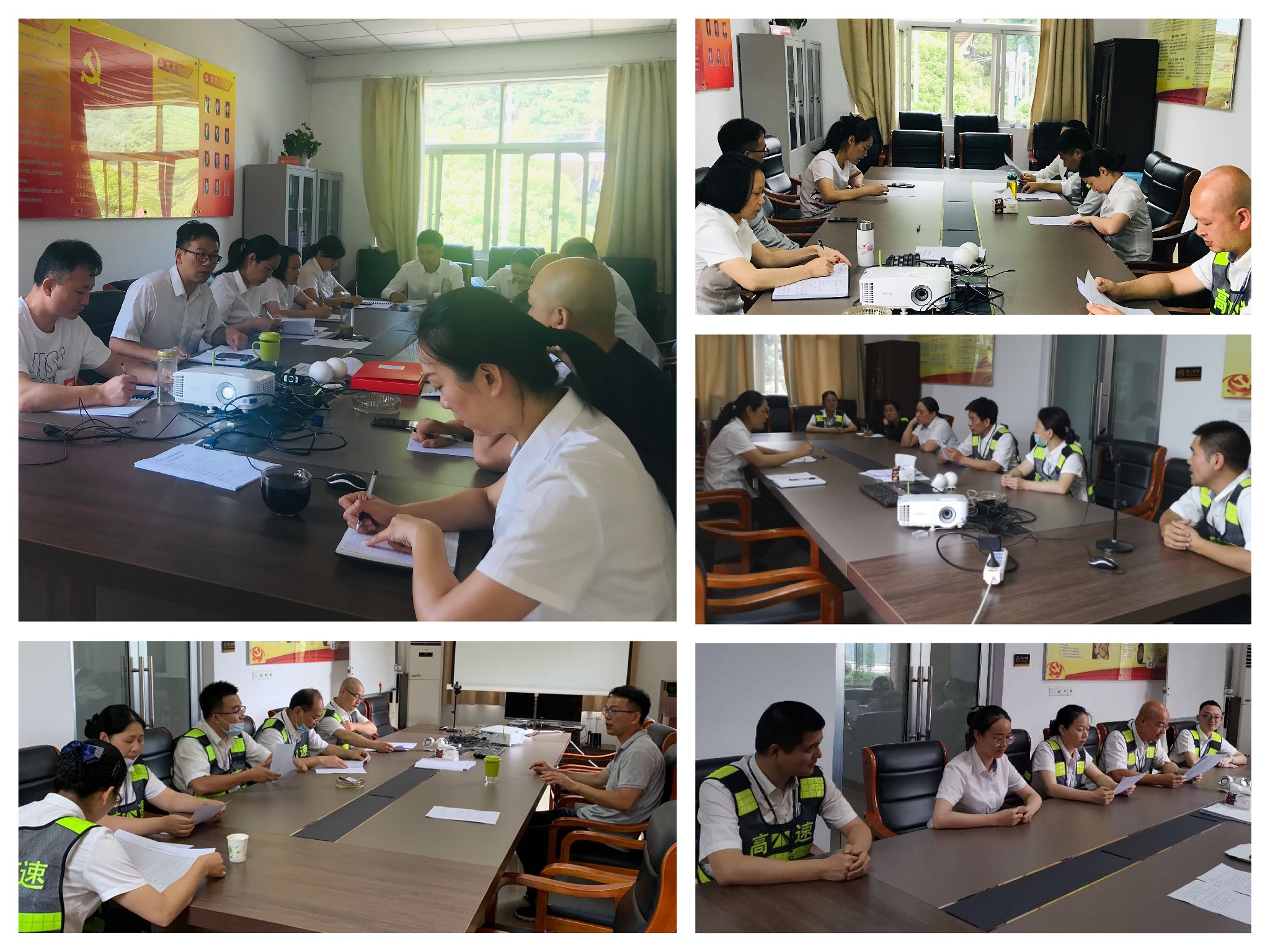 圖為集中、分批組織學習“安全生產月”相關文件 活動開展以來,臨海南收費所成立“安全生產月”活動領導小組。及時組織召開“安全生產月”活動小組工作會議,詳細宣讀并講解相關文件,通過全員集中、分批等形式組織學習《省交通廳轉發浙江省道路交通安全工作領導小組關于全省道路交通安全綜合治理提升行動方案的通知》、《關于進一步做好當前防汛工作的緊急通知》、《公司2020年“安全生產月”活動實施方案》,增強全所員工安全意識,明確安全責任,切實做好安全生產月的各項工作,為公司安全生產工作水平再上新臺階貢獻力量。