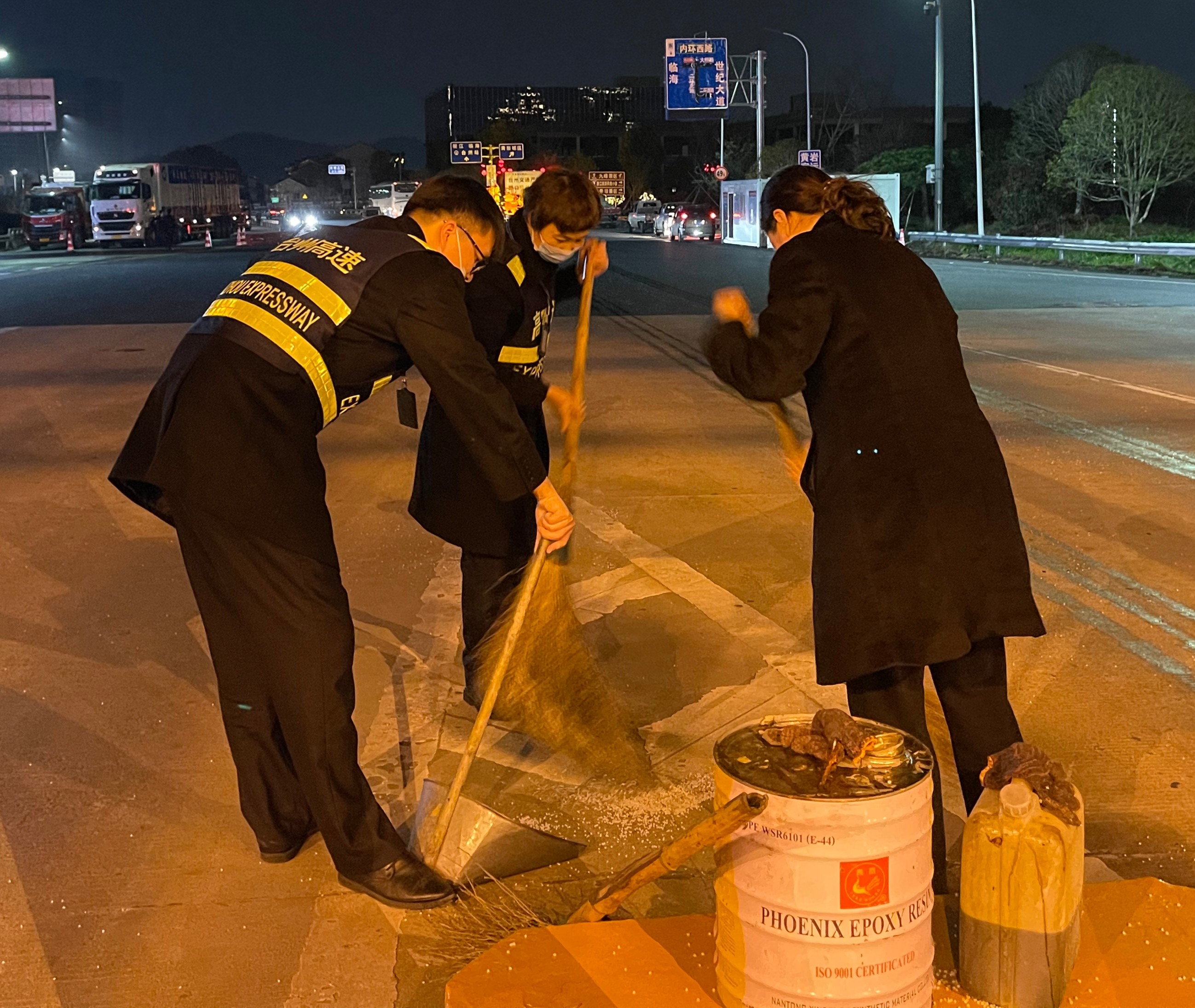 (圖為工作人員在清掃) 一時(shí)之間,車道路面上落滿大量的塑料顆粒,考慮到夜色已深,ETC車道上行駛的車輛速度大多很快,萬(wàn)一司機(jī)沒(méi)有及時(shí)發(fā)現(xiàn)前方道路上的灑落物,極易造成輪胎打滑,嚴(yán)重影響行車安全。情況緊急,為了后續(xù)通行車輛的安全,收費(fèi)班長(zhǎng)立刻關(guān)閉了該ETC車道,并放置警示標(biāo)志,然后將這一情況上報(bào)給監(jiān)控中心和收費(fèi)所值班人員。不等清潔人員到來(lái),收費(fèi)員羅時(shí)杰從車道的工具房拿出掃帚和簸箕,主動(dòng)開(kāi)始清掃工作。隨后其他不坐崗的收費(fèi)員也投入到了清掃工作中,這支臨時(shí)清掃小隊(duì)在沒(méi)有任何人的領(lǐng)導(dǎo)下自發(fā)地組織起來(lái)。這時(shí),從高速上完成機(jī)電養(yǎng)護(hù)工作的機(jī)電班工作人員正巧路過(guò),他們看到這一幕立刻將車停靠在一邊,加入清掃隊(duì)伍。盡管散落的塑料顆粒數(shù)量較多,但在大家的共同努力下,車道終于被清理干凈,恢復(fù)了正常通車。 春日的夜晚微風(fēng)拂過(guò),已有春的暖意,而更暖的是這一幕在春夜里的一個(gè)個(gè)身影。大家因?yàn)橐患∈露墼谝黄穑欢踩珶o(wú)小事。所有人心系安全,為所有過(guò)往車輛保暢保安全,為臺(tái)州高速貢獻(xiàn)自己的一份力。 崔翔浩 吳侃霓