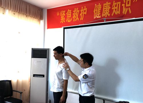 圖為授課現(xiàn)場 授課老師向水平為大家講述了現(xiàn)場心肺復蘇術(shù):判斷呼吸→高聲呼救→擺體位→打開氣道→人工呼吸及如何進行按壓與吹氣,隨后他授以簡單的醫(yī)學理論知識,對高血壓、心臟病、糖尿病等疾病的預防作了普及。當談及上班族普遍面臨的不樂觀的嚴峻現(xiàn)實:受肩周炎、頸椎病、腰椎間盤突出等職業(yè)病困擾時,向老師以現(xiàn)場演示的方式教大家?guī)渍袀鹘y(tǒng)的中醫(yī)方法——穴位按摩,鼓勵大家自己動手,通過按摩這種最直接的方法,緩解不適。