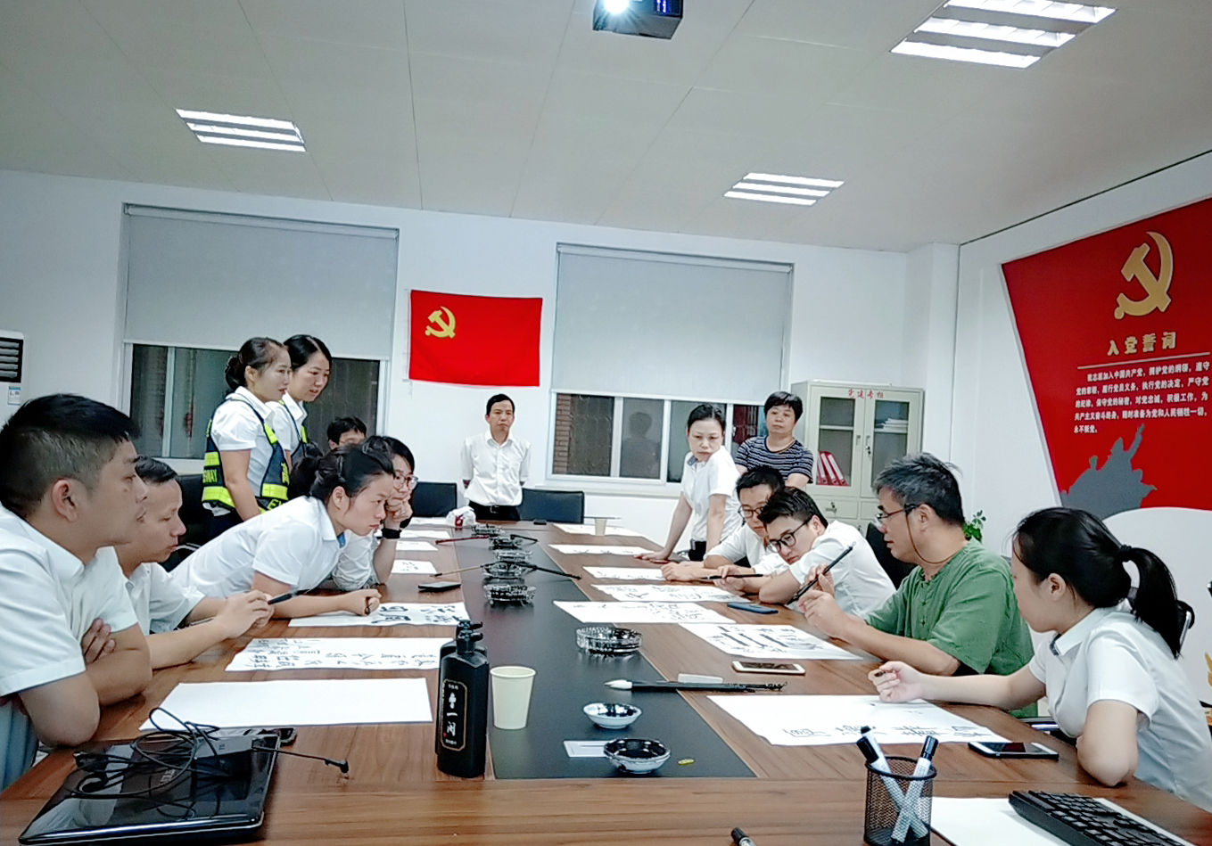 圖為學員練習書法 通過老師這種直觀的授課方式,學員們很快領會了書寫的基本節奏和韻律,每個人認真臨摹、創作,用眼睛感受書法美、用練習探索書法美、用心靈領悟書法美、用手創造書法美,共同享受了一場別開生面的書法盛宴。 此次學習使大家掌握了更多書法理論知識和書寫本領技能,強化了員工們對書法藝術的欣賞和思考,也進一步增強了員工間的凝聚力和吸引力。 鄭霞霞