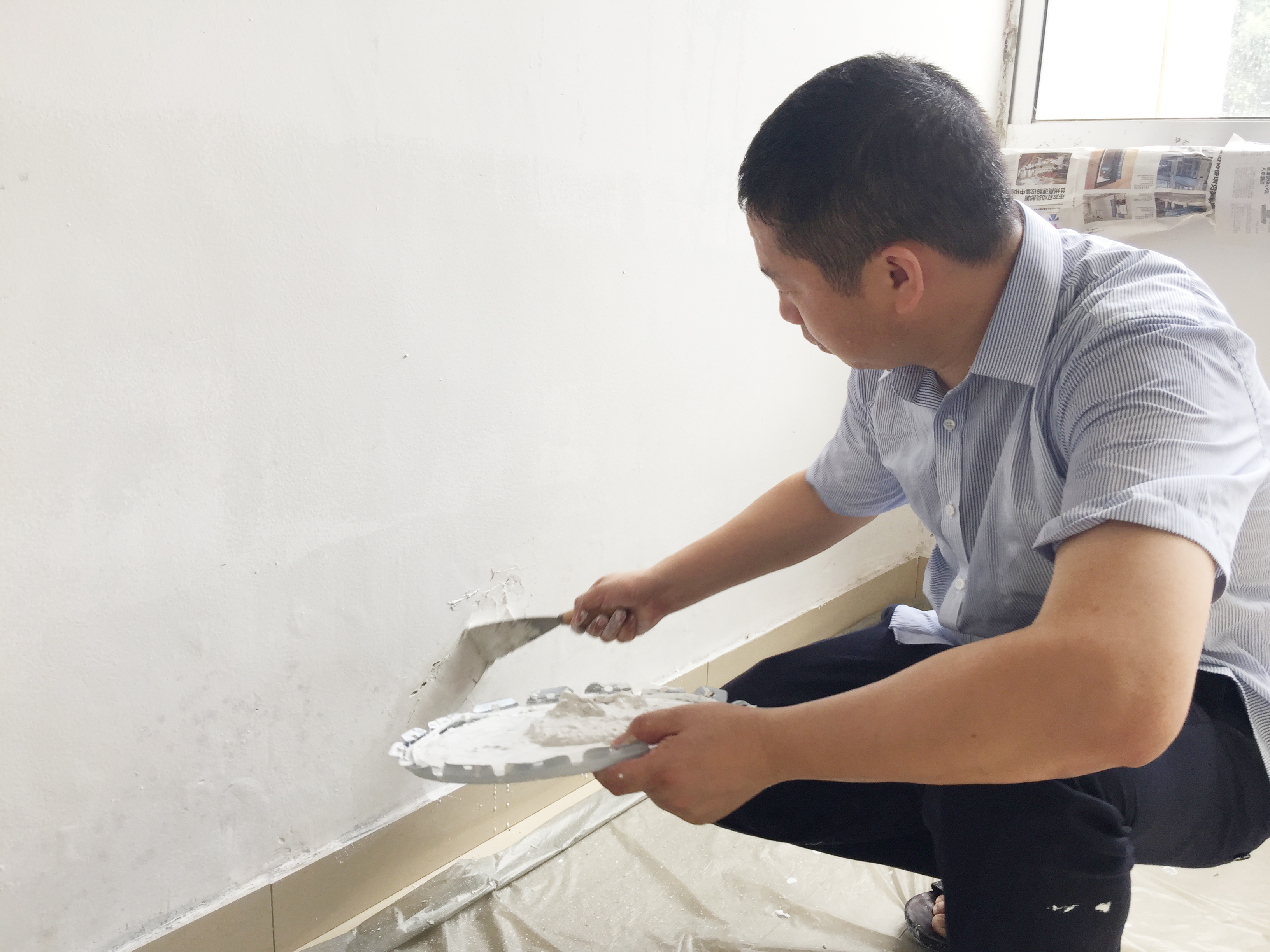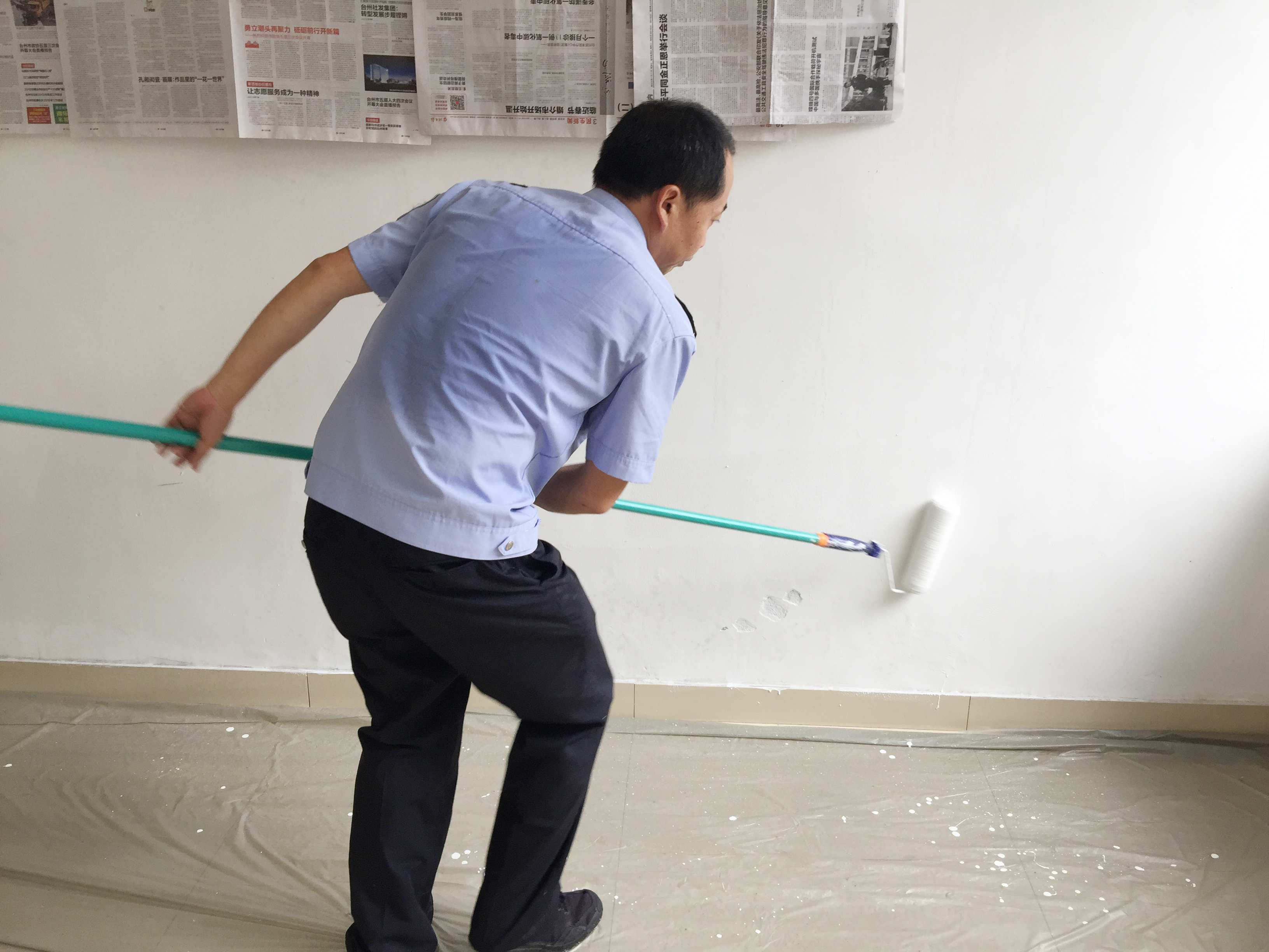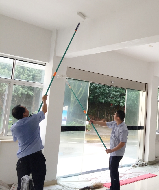 圖為“粉刷匠”粉刷現(xiàn)場 現(xiàn)場,工具備齊后,大家捋起袖子開始動工。家里正在裝修的林通,有著豐富的粉刷經(jīng)驗,指導(dǎo)大家如何將墻體粉刷得平整又美觀。分工明確后,有的拿起粉刷棒,有的攪拌涂料,有的鋪墊報紙及塑料紙,有的清理刷墻后殘留在地面的垃圾。整個勞動過程中,各個動作麻利,干勁十足。粉刷是個技術(shù)活,更是個力氣活,只見浸滿涂料的刷子在墻上揮舞著,個個汗如雨下,卻都顧不得休息,在大家的齊心協(xié)力下,原本一片灰不溜湫的墻壁變得雪白光潔。 這次義務(wù)勞動,不僅美化了站所環(huán)境,營造出廉潔的工作氛圍,增強(qiáng)了員工的凝聚力和向心力,更增加了全體員工對公司的一份熱愛。 林玲