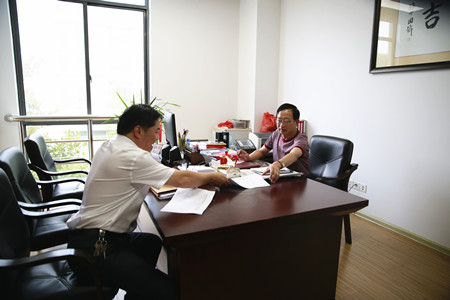 圖為公司總經(jīng)理助理了解摸底老干部的持股情況