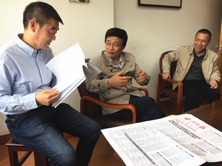 圖為市國資委主任徐豪和集團總經(jīng)理張建平一起走訪市國稅局股東單位