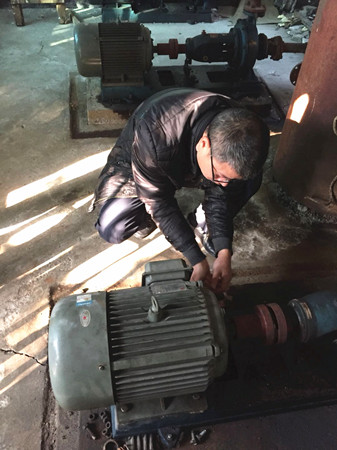 圖為工作人員修理水泵電機現場 因設備比較陳舊,而且原圖紙等資料不全,構造原理無從了解,黃土嶺隧道所所長助理金衛軍帶領執勤隊,一邊推測,一邊根據水泵工作原理和電器修理經驗尋找故障點,對設備可能出現的問題進行反復推敲,逐一排查,最終確定為上水位控制繼電器觸點接觸不良造成導電故障。經過對觸點的調整和修復,以及對軸承部位進行加油和電機、水泵平衡重新調節后,設備之前出現的電機震動、聲音異常現象和無法自動進水等問題被一一解決,消防水泵恢復正常運作。 此次檢修工作不僅及時消除了安全隱患,確保設備隨時處于良好的待命狀態,在檢修的過程中,也為隊員開展了一次良好的技術培訓。 毛譯聆