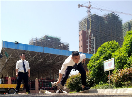 該演練模擬了生活樓發生火災,員工一發現火情就立即撥打了報警電話。參加演練人員聽到警報聲后,迅速拿起打濕的毛巾捂住口鼻,手扶墻體或樓梯扶手,俯身低姿從三樓或二樓,向安全通道有序撤離。全體人員不一會就疏散到了安全地帶,同時連接好消防水帶,迅速跑至火源附近,對準火源有效滅火。