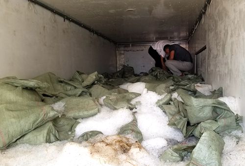 李貴陽(yáng)打開(kāi)車(chē)輛后廂門(mén),迎面撲來(lái)一陣?yán)滹L(fēng),一眼望去車(chē)廂里面全部是一袋袋的花蛤,上面還壓著袋裝的冰塊和零碎的碎冰,車(chē)廂內(nèi)部看不清楚。憑借多年的工作經(jīng)驗(yàn)和認(rèn)真負(fù)責(zé)的工作態(tài)度,李貴陽(yáng)二話沒(méi)說(shuō),直接爬上濕滑的車(chē)廂,踏過(guò)冰袋和碎冰,深入到車(chē)廂里面去檢查,把冰袋掀開(kāi)后,結(jié)果發(fā)現(xiàn)下面全部是空桶。原來(lái)這樣做既可以增加貨物面積也可以使重量加重,從而達(dá)到綠農(nóng)政策的免費(fèi)通行要求。