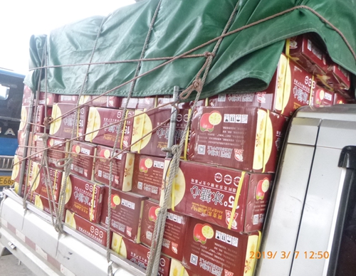 圖為綠農(nóng)車運(yùn)輸?shù)呢浳?/span> 按照流程,正常刷卡和收費(fèi)后,車子就可以放行了。但作為老收費(fèi)員,老周還是下意識(shí)地瞟了一眼車上的貨物,像是一箱箱蘋果,于是便詢問了司機(jī)。在得到司機(jī)的肯定回答后,老周告知他的貨車如果運(yùn)的是符合文件規(guī)定的“鮮活農(nóng)產(chǎn)品”,是可以免交通行費(fèi)的。于是老周叫上其他工作人員一同出去拍照檢查。在檢查過程中,得知司機(jī)是第一次運(yùn)蘋果上高速,不了解鮮活農(nóng)產(chǎn)品運(yùn)輸綠色通道相關(guān)政策,老周向他簡(jiǎn)要介紹了有關(guān)綠農(nóng)車免費(fèi)通行政策。檢查后,該車是符合綠色通道減免政策的,老周作了登記后對(duì)該車免費(fèi)放行。 在此提醒廣大司機(jī),開車上路前可以多多了解高速公路相關(guān)的優(yōu)惠政策,如“重大節(jié)假日免收小型客車通行費(fèi)”和“鮮活農(nóng)產(chǎn)品運(yùn)輸綠色通道”等之類的相關(guān)政策法規(guī)。同時(shí),各收費(fèi)站將堅(jiān)決打擊假冒違法綠農(nóng)車,嚴(yán)格執(zhí)行相關(guān)政策規(guī)定,做到應(yīng)免不征,應(yīng)征不漏。 蔡建星
