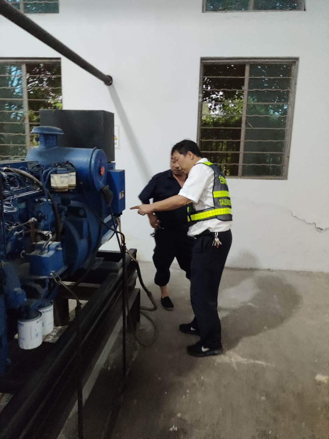 圖為搶修人員檢查發電機運行狀況