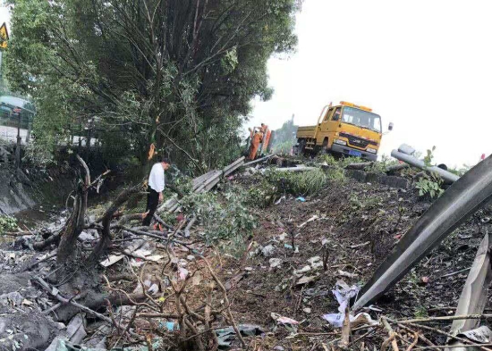 7月15日上午,臺州高速集團(tuán)施救中心輔查員和駕駛員在核對路產(chǎn)損失。這是他們第三次到事故現(xiàn)場進(jìn)行路產(chǎn)勘查。