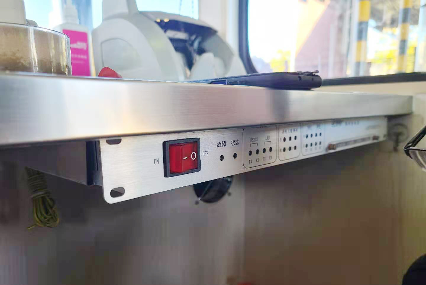 經過中心技術人員集思廣益和反復討論,他們決定利用不銹鋼鐵片作支架,用自攻螺絲將其固定在桌面下方,隨后將控制器移至支架上,最后再在控制器后部取個圓孔,將原先桌面上的電源線、數據線等通過孔洞連接到設備上。敲定方案后,大家著手定制購買相應材料和工具,不到3天時間,集團5個收費站共計39個天線控制器全部完成“搬家”。 “這樣的設計即隱蔽又美觀,我們也可以放心打掃桌面了,以前上面連杯水都不敢放,就怕不小心弄翻時損壞設備?!迸_州收費所收費班長馬德偵對著“安家”后的天線控制器贊嘆道。 項寅曉