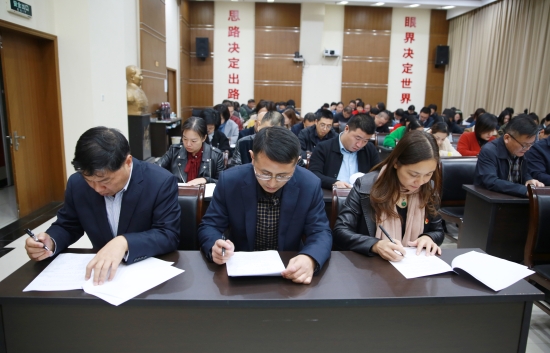 此次測試采取閉卷形式,分黨員和非黨員試題兩卷,測試范圍包括“不忘初心、牢記使命”主題教育、十九大報告及習近平新時代中國特色社會主義思想等知識。大樓100員工參加測試。