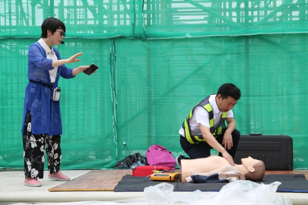 圖為李美芬在現(xiàn)場開展心肺復(fù)蘇培訓(xùn)