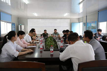 圖為考評組在8#立交項目部匯總反饋檢查問題