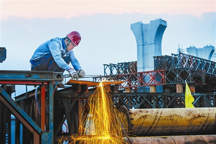 臺(tái)州高速市政公司在市內(nèi)環(huán)路建設(shè)中,緊盯全線11月11日通車目標(biāo)不放松,取得較好效果。截至8月30日,公司投資建設(shè)的內(nèi)環(huán)路(黃巖段)已完成投資產(chǎn)值10.9億元,占合同總價(jià)的93%。圖為6號(hào)立交的施工人員正在緊張施工。 本報(bào)通訊員鐘 彪攝